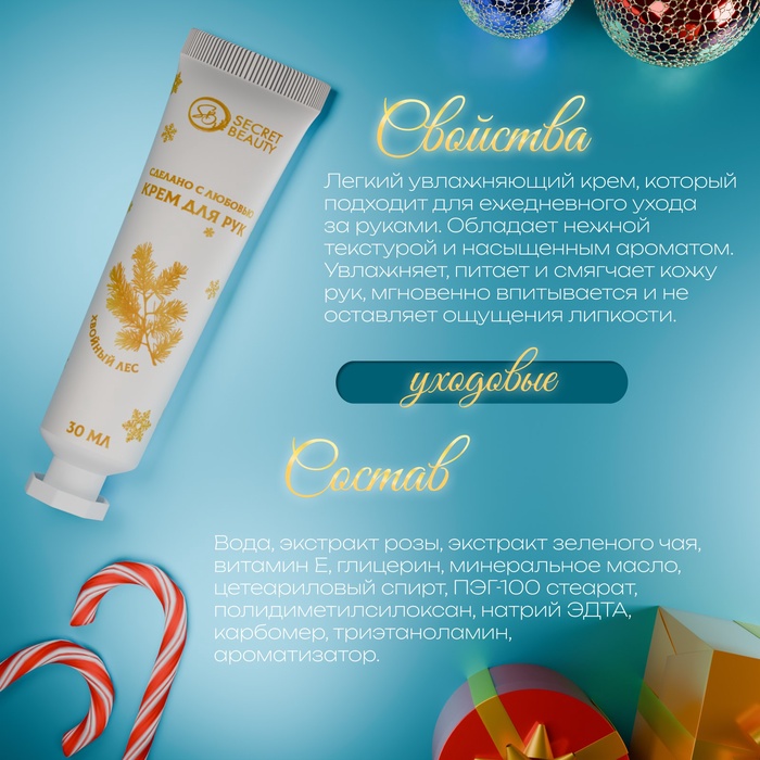 Новогодний крем для рук с ароматом хвойного леса, увлажняющий, 30 мл