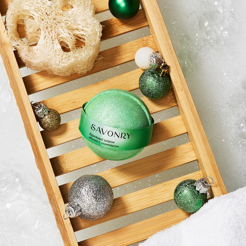 Мягкое мерцание шиммера в бомбочке создают волшебные переливы, превращая купание в спа-ритуал.