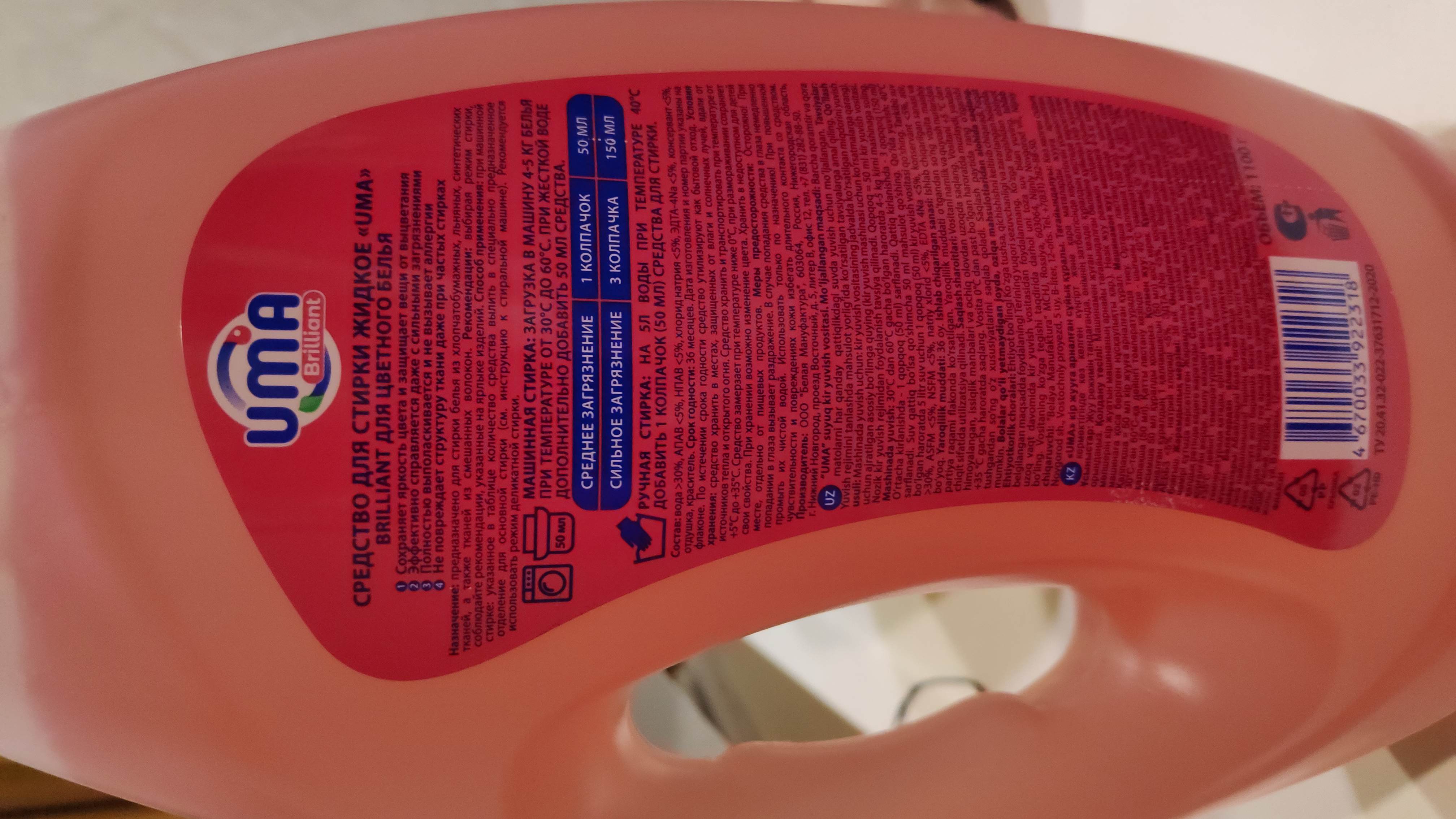 Удобно пользоваться, хватает на 22 стирки если наливать по дозе, пахнет приятно, пятен не оставляет