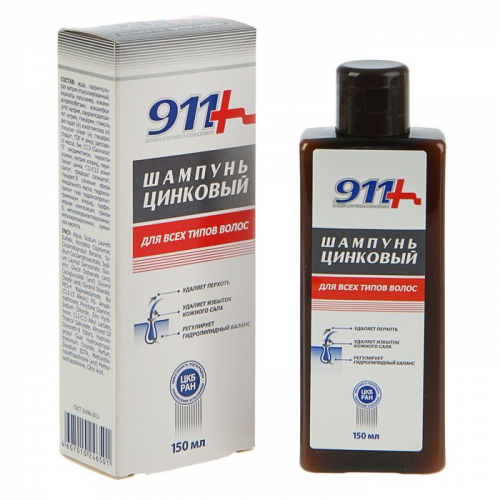 Шампунь «911 Цинковый» при себорее, псориазе, перхоти, 150 мл