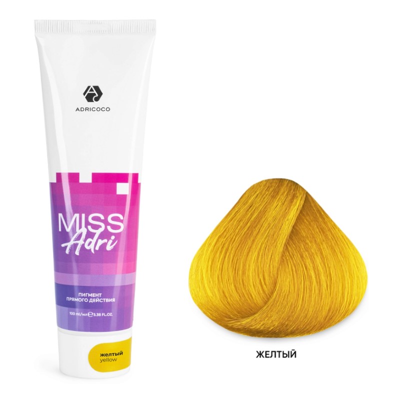Пигмент прямого действия для волос Miss Adri без окислителя, желтый, 100 мл.