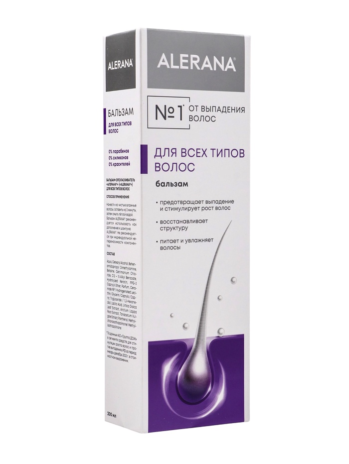 Результат: здоровые и блестящие волосы без утяжеления, ломкости и выпадения. Специализированная серия безсульфатного бальзама для волос ALERANA базируется на достижениях современной косметологии и фармакологии.