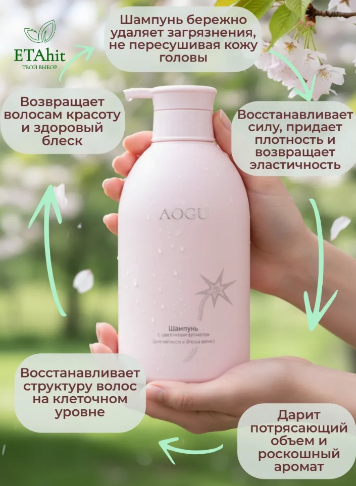 AOGU Natural Floral Shampoo (Smooth & Shiny) Шампунь для гладкости и блеска волос 550мл