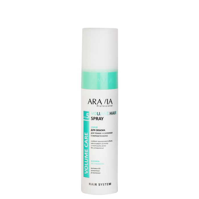 ARAVIA ( АРАВИЯ ) Спрей для придания легкости и невесомости прическе, лишенной объема. Приподнимает волосы от корней, повышает плотность и густоту, не утяжеляя и не склеивая пряди.