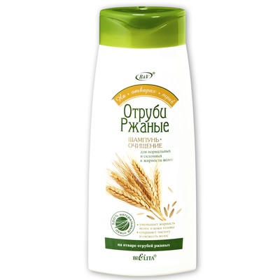 Данный шампунь содержит отвар ржаных отрубей, который эффективно нормализует деятельность сальных желез, уменьшая жирность волос и кожи головы.