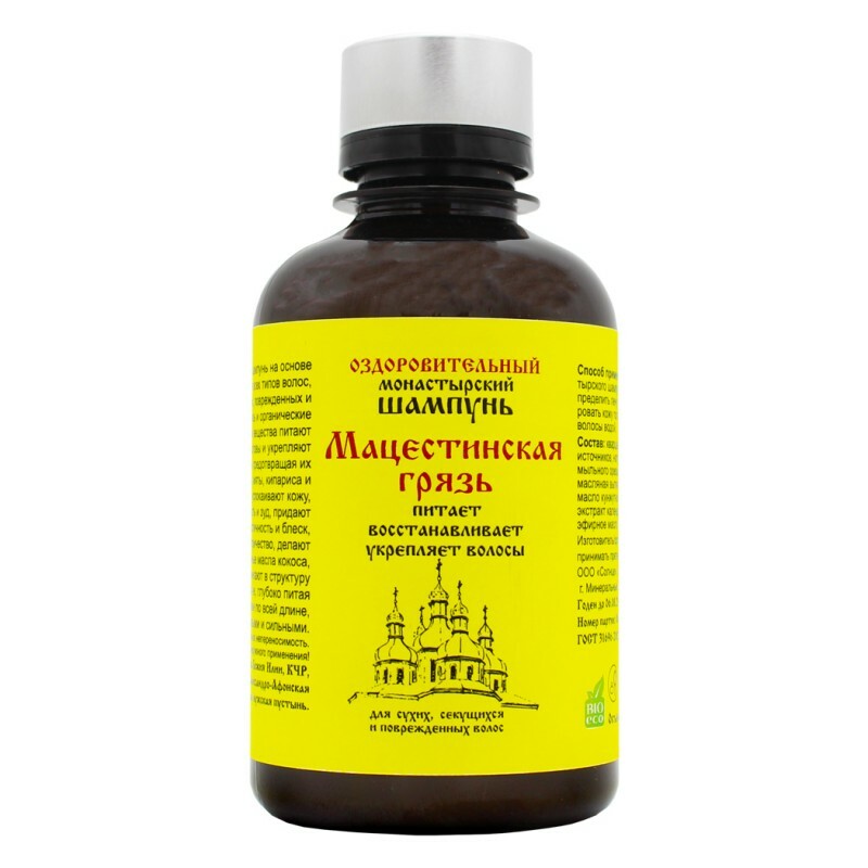 Монастырский натуральный шампунь на основе целебных грязей подойдет для всех типов волос, особенно для сухих, поврежденных и ослабленных. Лечебная грязь и органические грязевые вытяжки, минеральные вещества питают и оздоравливают кожу головы и укрепляют луковицы волос, тем самым предотвращая выпадение волос. Экстракты мяты, кипариса и календулы дарят свежесть, успокаивают кожу, помогают устранить перхоть и зуд, волосам придают упругость, эластичность и блеск, уменьшают статическое электричество, делают волосы послушными. Ценные масла кокоса, кунжута, чайного дерева проникают в структуру волос, восстанавливая ее, глубоко питая микроэлементами и витаминами по всей длине, делают волосы сильными, гладкими, здоровыми и сильными.
