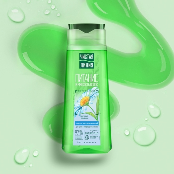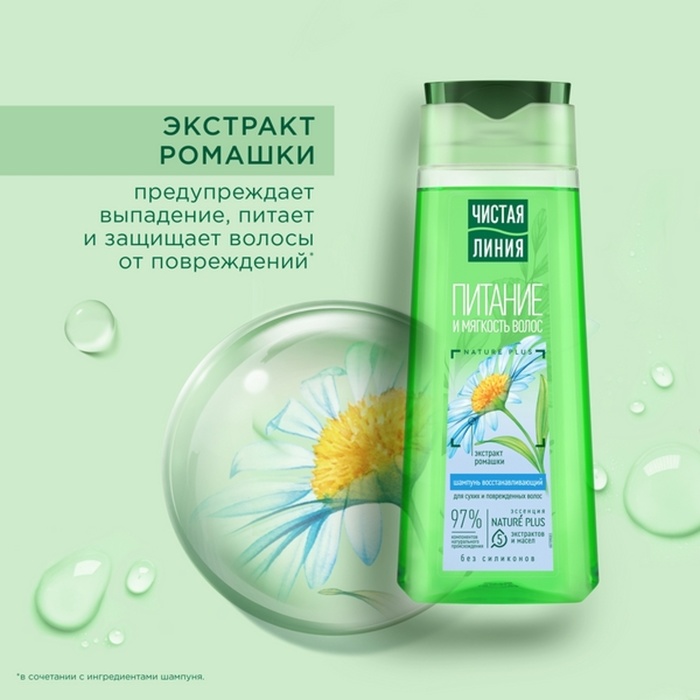 Шампунь для сухих и поврежденных волос Чистая линия с экстрактом ромашки, 250 мл