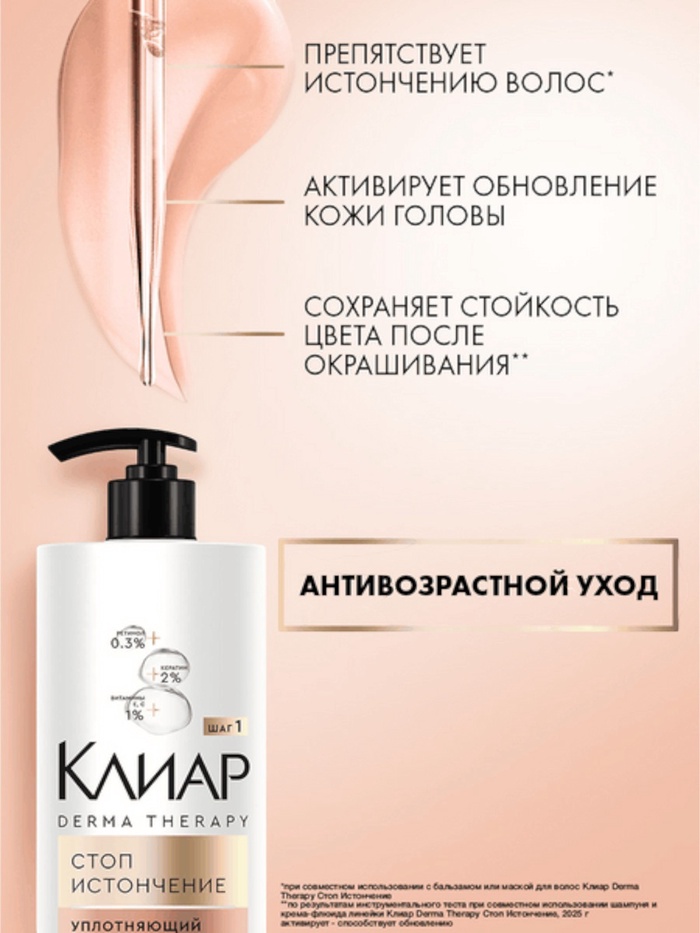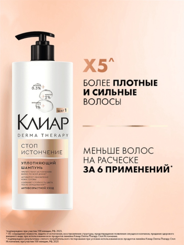 Шампунь с кератином для уплотнения волос Клиар — это идеальное решение для женщин, стремящихся вернуть своим локонам объем и силу. Этот продукт, разработанный в рамках системы ухода Клиар Derma Therapy, помогает предотвратить истончение волос по всей длине.