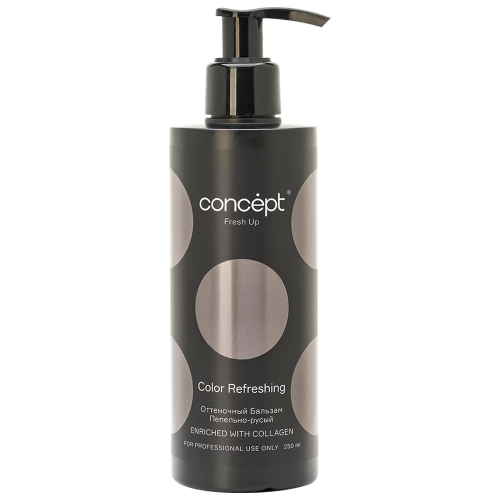 CONCEPT ( Концепт ) Оттеночные бальзамы Fresh Up - это средства с необычно широким спектром применения. На первом месте поддержка цвета между окрашиваниями, а также ретуширование небольшой седины. Бальзам может быть рекомендован для использования и в домашних условиях, а может использоваться непосредственно мастером при создании сложных трендовых образов с красными и медными прядями. Палитра охватывает самые популярные направления оттенков волос, а для расширения творческих возможностей цвета прекрасно смешиваются между собой и с продуктами Fashion Look. Продукт не содержит аммиак и перекись водорода. Оттеночные бальзамы Fresh Up на основе прямых пигментов легко и быстро оживляют натуральный цвет волос, обновляют косметический цвет, делая его ярким и насыщенным. Обогащенная коллагеном формула бальзама способствует восстановлению гидробаланса и удержанию влаги внутри волоса, придавая ему еще большую эластичность и блеск. Линолевая кислота восстанавливает структуру волос и повышает защитный барьер, льняное масло интенсивно питает и увлажняет волосы.