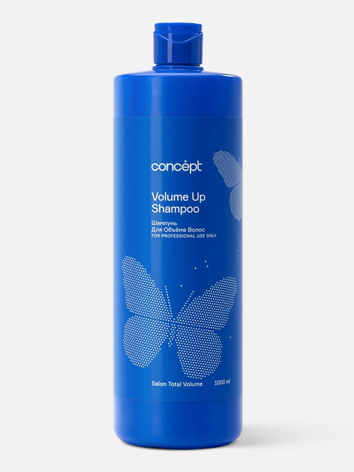 CONCEPT ( Концепт ) Профессиональный шампунь для придания объема Volume Up Shampoo – моментально приподнимает волосы от корней, дарит прическе эффект легкости и воздушности. Комплекс натуральных протеинов проникает в структуру, мягко обволакивает каждый волос, уплотняет и придает ему прочность. Шампунь быстро и легко преобразуется в легкую воздушную пену, отлично очищает волосы и кожу головы, избавляет ее от остатков липидов (себума) и косметических средств. Прическа мгновенно приобретает пышность, легкость и воздушность.
