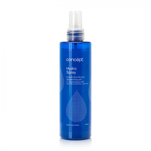 CONCEPT ( Концепт ) Профессиональный увлажняющий спрей с термозащитой для интенсивного увлажнения и поддержания гидробаланса в структуре волос. Комплекс Hydrobalance из морских водорослей, молочной кислоты и алоэ вера насыщает волосы влагой и аккуратно запечатывает кутикулу по всей длине. Предотвращает испарение воды с поверхности волоса, создавая защитную влагоудерживающую пленку. Экстракты бамбука, шелка и хлопка выравнивают кутикулу, смягчают и придают блеск волосам.