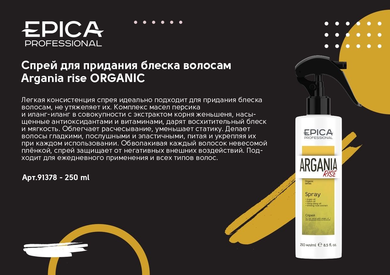 EPICA Спрей аргана для придания блеска волосам с комплексом масел, 250 мл.