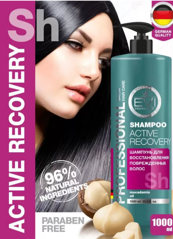 EVI Professional Шампунь Активное восстановление для поврежденных волос. Шампунь Активное восстановление специально разработан для поврежденных, сухих, ослабленных и склонных к выпадению волос. Это средство благотворно воздействует на поврежденные волосы, наполняя их силой и жизненной энергией.