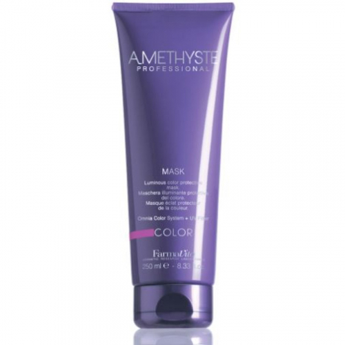 Применение шампуня Amethyste Color увеличивает время сохранения цвета после окрашивания. Инновационная система Omnia Color заметно уменьшает вымывание косметического цвета, обеспечивает значительное увеличение прочности и увлажнения волос. Особая формула придает волосам силу и энергию, благодаря присутствию в составе олигоэлементов (кремний, магний, медь, железо, цинк), которые глубоко проникают в волокна волос, способствуя восстановлению поврежденных участков. Волосы становятся блестящими, сильными и здоровыми При использовании шампуня ощущается приятная нотка пудрового запаха, который создает ощущение чистоты и комфорта как во время, так и после использования продукта. Активные ингредиенты: система Omnia Color: Масло из семян пенника лугового - драгоценное масло богато природными антиоксидантами и уникальным составом жирных кислот. Помогает сохранить интенсивность цвета и придает блеск. Исследования показали, что масло проникает в волокна волос, восстанавливая структуру и повышая его прочность. Пантенол - глубоко проникает в структуру и позволяет сбалансировать естественный уровень влаги в волосах. УФ-фильтр - защищает волосы от выгорания на солнце, вымывания красителя и потускнения цвета. Олигоминеральный комплекс - комплекс олигоэлементов (кремний, магний, медь, железо, цинк), которые глубоко проникают в волокна волос и помогают восстановить поврежденные участки. Способ применения: нанести шампунь на увлажненные волосы и кожу головы. Вспенить, распределить аккуратными массажными движениями. Смыть. При необходимости процедуру повторить. После применения шампуня нанести на влажные, подсушенные полотенцем волосы маску Amethyste Color, равномерно распределить по длине. Выдержать несколько минут. Смыть. Приступить к укладке. Для достижения максимального эффекта используйте лосьон Amethyste Color Re-Vital.