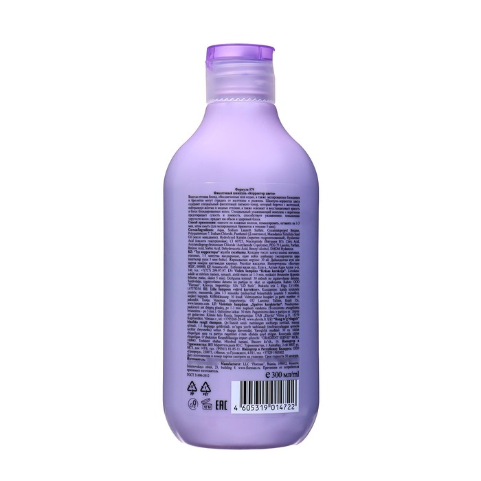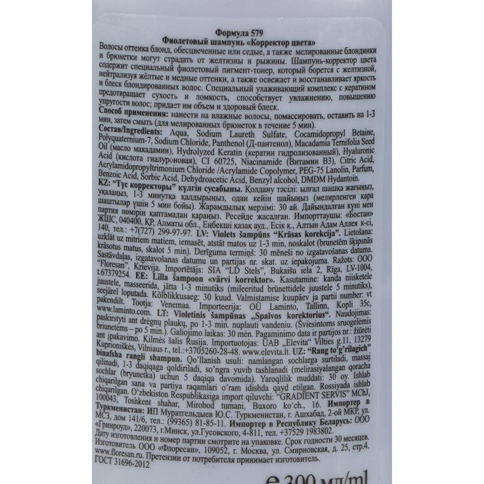 * Фиолетовый пигмент шампуня помогает нейтрализовать нежелательные желтые оттенки и придает волосам холодный, натуральный блонд или серый оттенок.