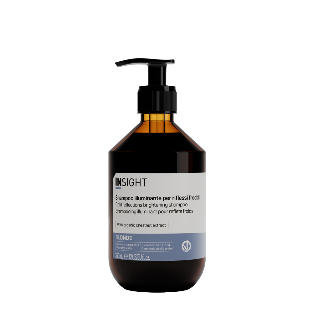 INSIGHT ( Инсайт ) Разработан с целью поддержания холодных оттенков на ранее осветленных волосах, за счет нейтрализации желто-оранжевых пигментов. pH 4.50-4.90 Специальная формула шампуня разработана с целью поддержания холодных оттенков на ранее осветленных волосах. Органические компоненты продукта максимально ухаживают за волосами, при этом дарят блеск и эластичность.