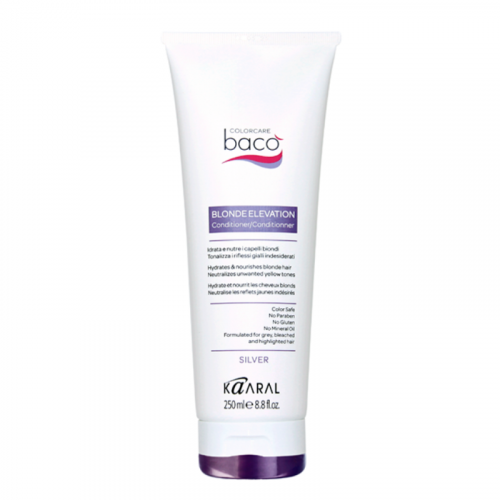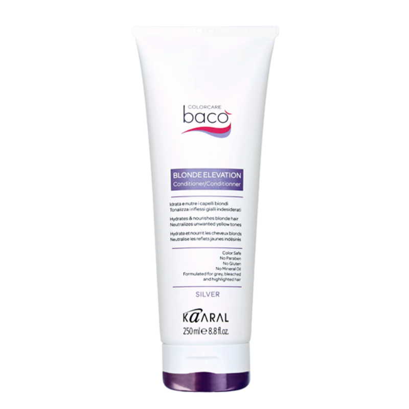KAARAL ( КААРАЛ ) Кондиционер увлажняющий питательный BLONDE ELEVATION CONDITIONER для светлых, обесцвеченных, мелированных и седых волос. Обеспечивает питание, мягкость и эластичность. Содержит фиолетовые пигменты, нейтрализующие нежелательные теплые оттенки, придавая холодные нюансы светлым волосам. Восстанавливает естественный блеск седых волос.