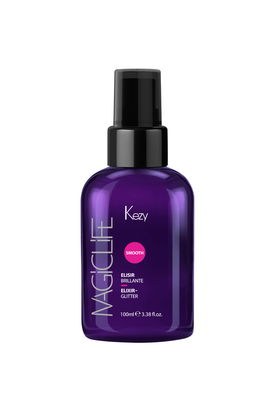 Сделать волосы потрясающе гладкими и сияющими позволяет специальный эликсир-глиттер Kezy Magic Life Smooth Elixir-Glitter.
