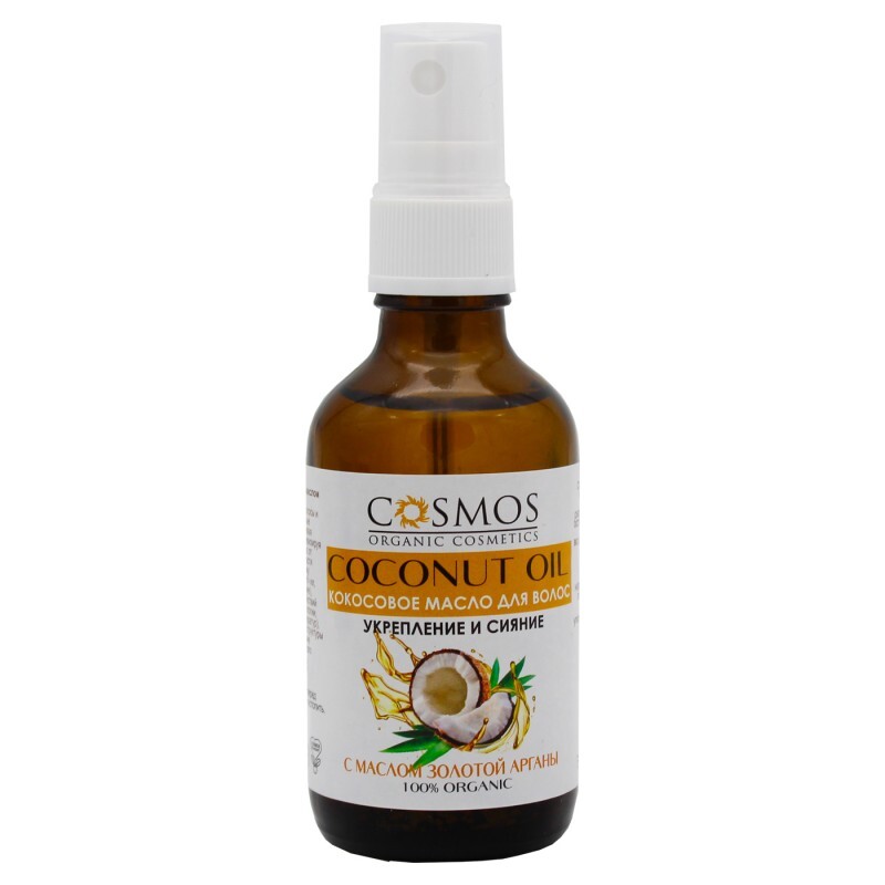 Масло Кокосовое для волос с маслом золотой арганы укрепление и сияние, стекло, 50 мл, "Бизорюк"