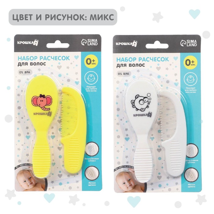 Расческа-щетка с мягкой щетиной и удобная расческа с закругленными зубчиками предназначены для малышей с первых дней жизни.