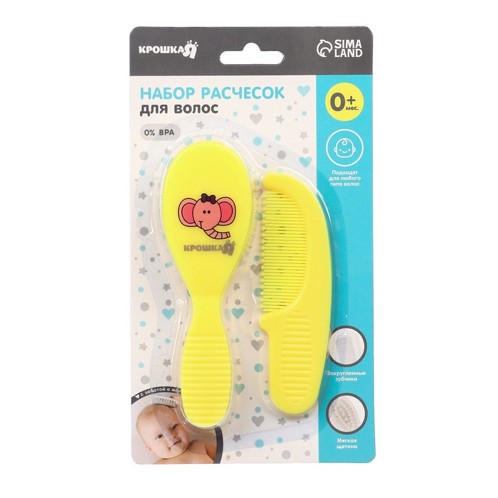 Набор подходит для первых волос малыша. Закруглённые зубчики расчёски и мягкий нейлоновый ворс не травмируют нежную кожу ребёнка.