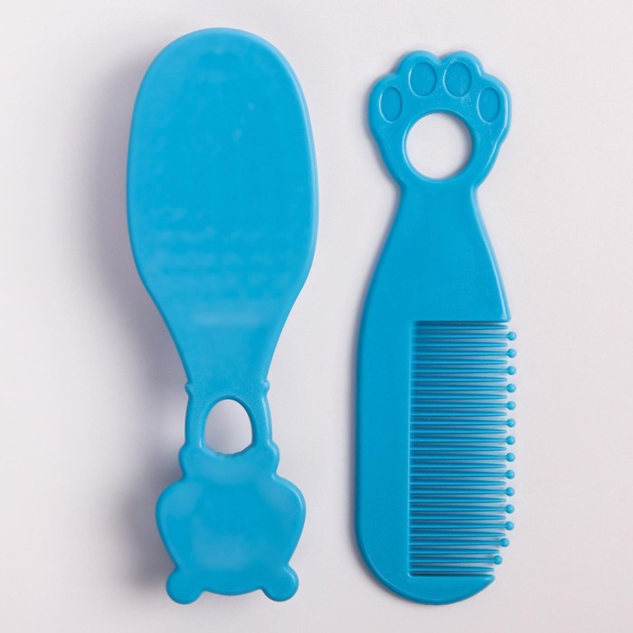 Расчёска детская, щётка для волос в наборе, «Мишка», голубой