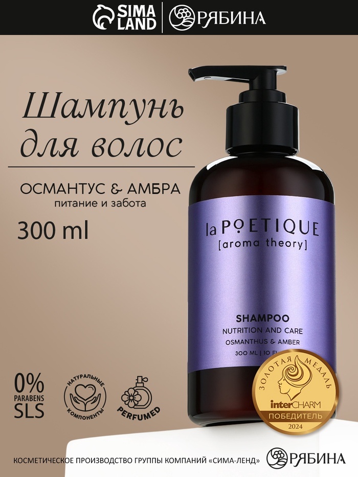 Шампунь для волос, питание и уход, 300 мл, аромат османтуса и амбры, LA POETIQUE