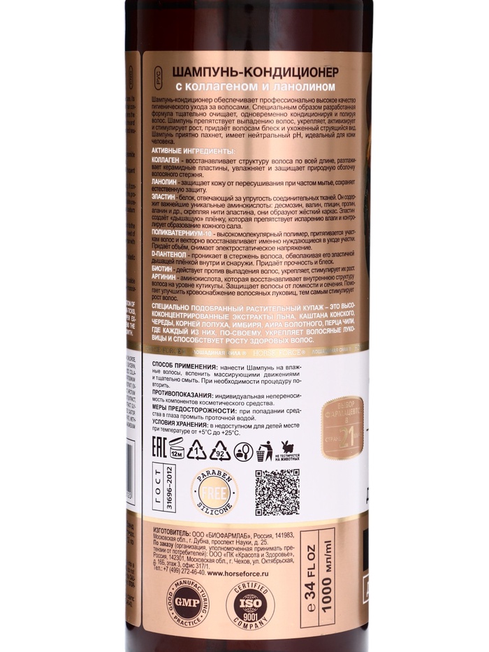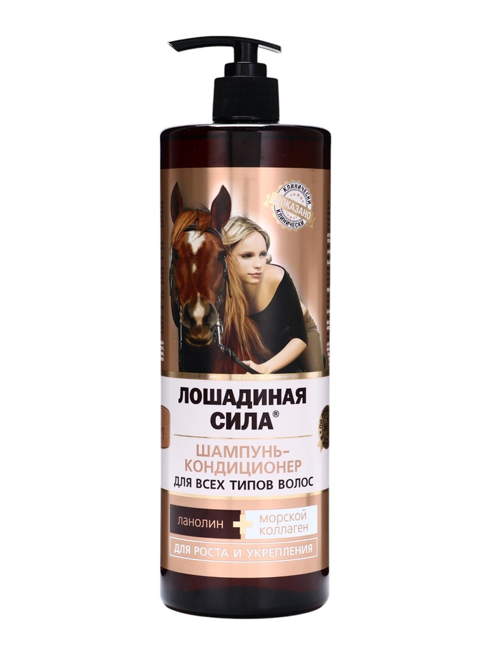 Шампунь-кондиционер Лошадиная сила с коллагеном и ланолином, 1000 мл