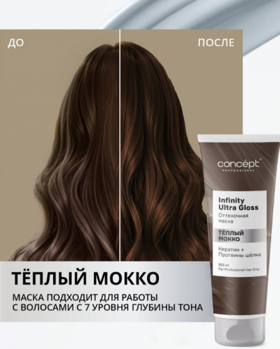 Это многофункциональный продукт для создания и поддержания ярких и красивых оттенков, который одновременно выполняет функции ухода и восстановления, а главное, придает волосам невероятный блеск. Линия предлагает гамму из 5 наиболее востребованных сегодня оттенков от ультрамодных граната и медного, до классических мокко и пепельного.