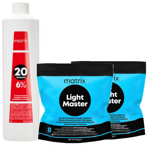 MATRIX Набор для осветления волос: осветляющий порошок Light Master, 500 гр х 2 шт + крем-оксидант 20 vol. 6%, 1000 мл