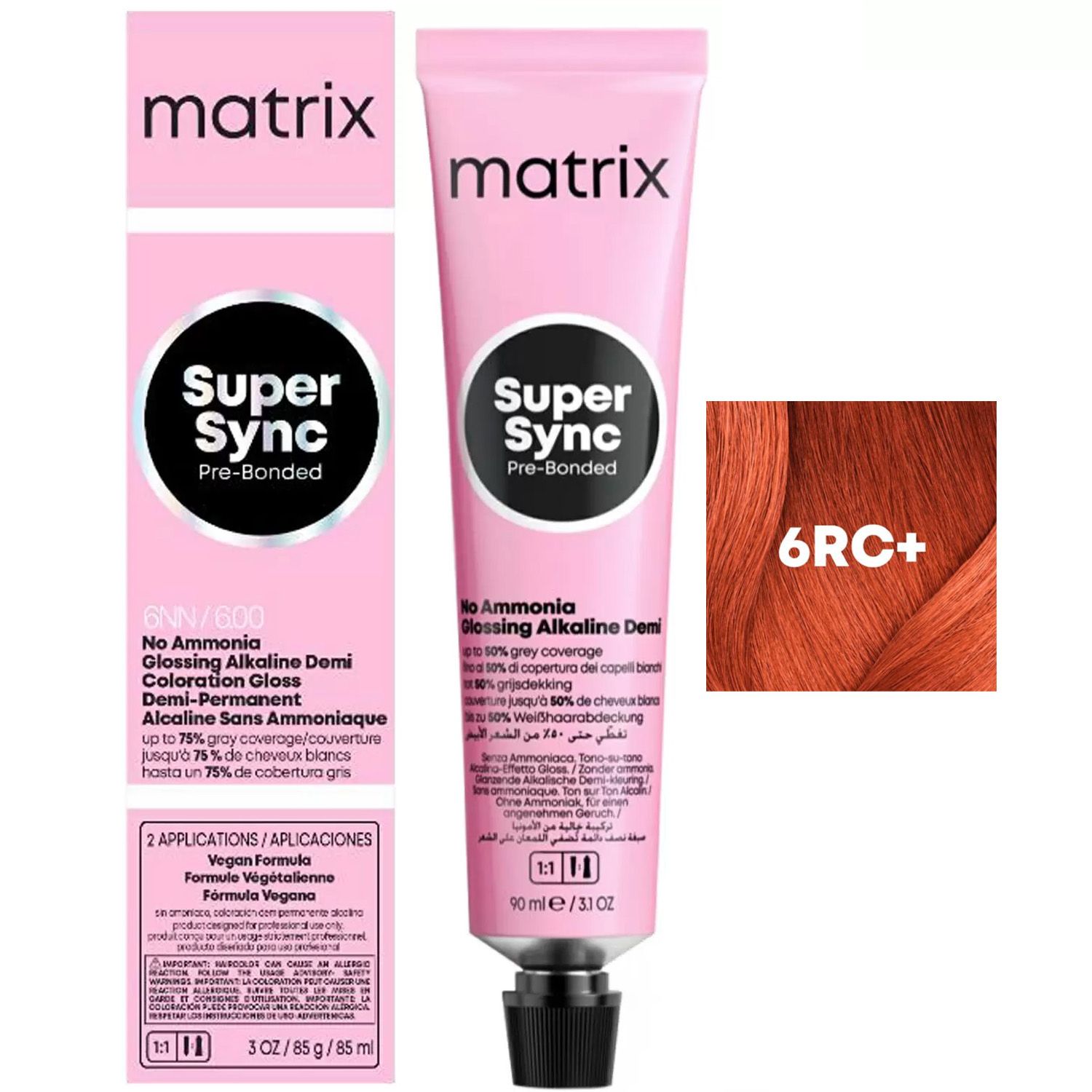 Super Sync идеален для тонирования после осветления порошком. Технология поднимает натуральную базу до 1/2 уровня тона. Краситель эффективно перекрывает до 75% седины*. Благодаря новому бондеру в составе красителя вы сможете сохранить качество волос окрашивание за окрашиванием. Технология придает волосам глянцевый блеск. обеспечивает легкость расчесывания по всей длине.