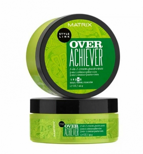Matrix Over Achiever 3 в 1 (50 мл) — это универсальное средство для укладки волос, которое сочетает в себе свойства крема, пасты и воска. Инновационная формула продукта позволяет легко наносить его, как крем, придавать текстуру волосам, как паста, и фиксировать укладку, как воск. Продукт обеспечивает гибкость и податливость волос, не склеивает их, что позволяет многократно моделировать причёску в течение дня.