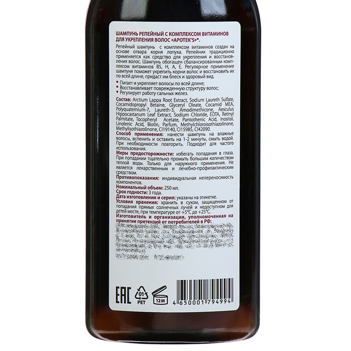 Шампунь Apotek`s репейный с комплексом витаминов для укрепления волос, 250 мл
