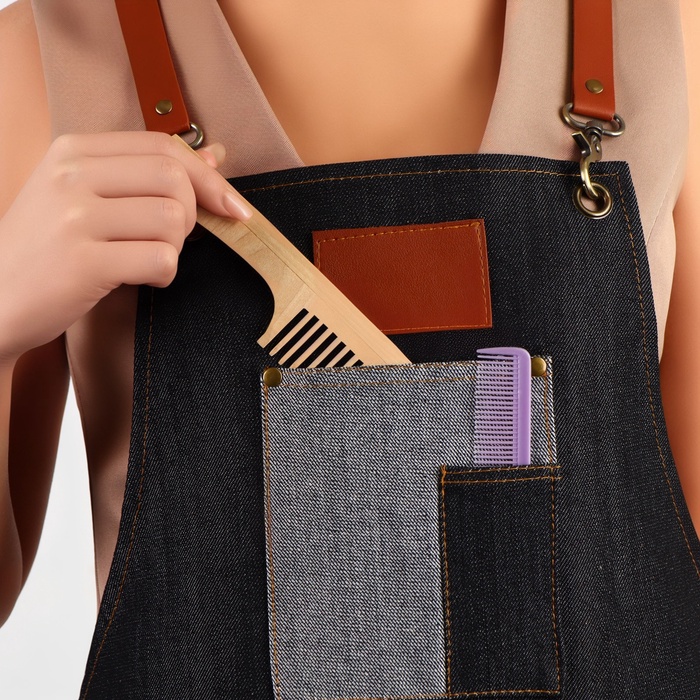 Фартук защищает одежду мастера от загрязнений. Материал легко моется и долго сохраняет свои свойства. Вы можете закрепить на нём парикмахерские инструменты: это ускорит работу и подчеркнёт ваш профессионализм.