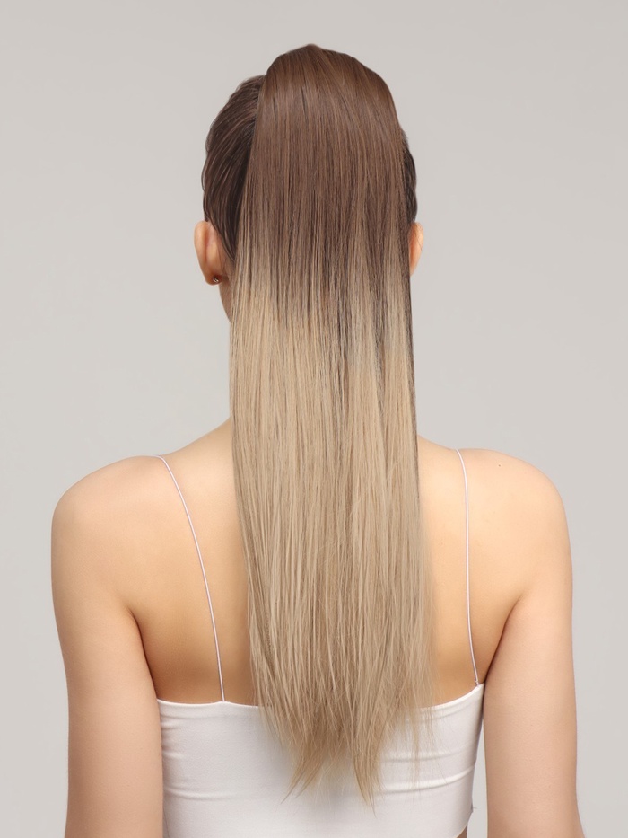 Хвост накладной, прямой волос, на резинке, 60 см, 100 г, омбре русый, блонд