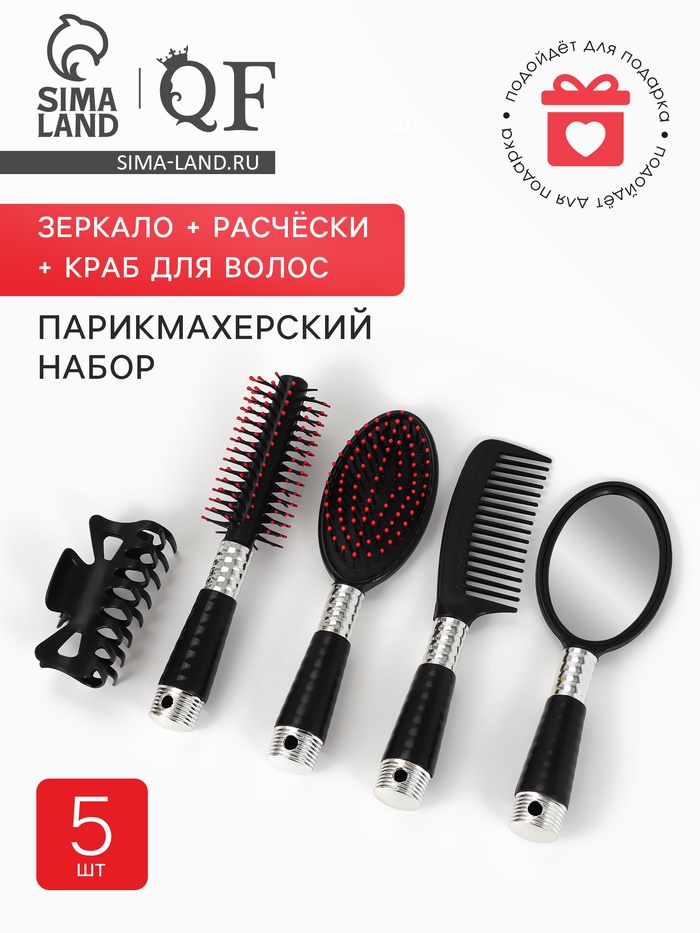 Набор парикмахерский, 20(±1) см, 5 предметов, красный