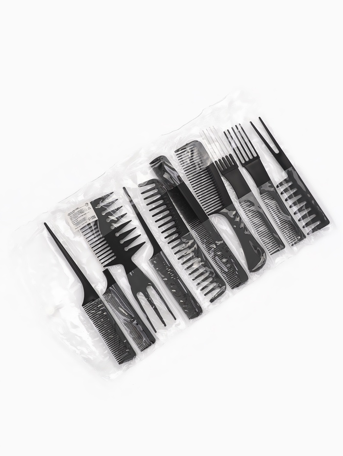 Набор расчёсок, 10 предметов, в чехле, чёрный