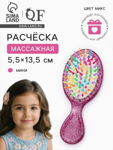 Расчёска - мини массажная, 5.5×13.5(±1) см, МИКС