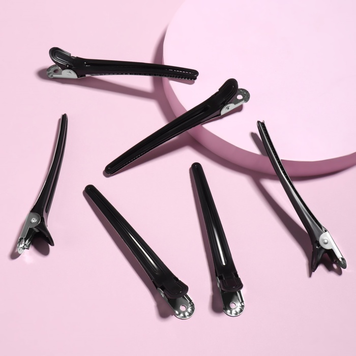 Зажимы для волос, набор - 6 шт., 10(±1) см, чёрные