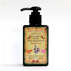 Насыщенный комплексный состав реставрирующего шампуня BINT MEISOORA «Легкость» Национального сирийского производства восточной косметики East Nights борется с разрушением структуры волос и их обезвоживанием, обеспечивая высокоэффективную защиту. Быстро справляется с ломкой структурой тонких волос и повреждениями кератинового слоя.