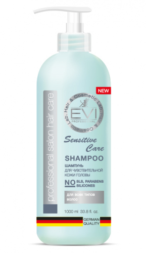 Шампунь «Сенситив» для чувствительной кожи головы «EVI» Professional специально разработан для бережного ухода за уставшими, поврежденными и ослабленными волосами. Богатый по составу шампунь бережно очищает, питает волосы и кожу головы, эффективно удаляя все загрязнения. Обеспечивает восстановление структуры поврежденных волос. Защищает от воздействия неблагоприятных факторов окружающей среды. Сохраняет естественный жировой баланс, не повреждая структуру волоса, как результат — пряди выглядят более живыми и естественными. Густая консистенция и интенсивное пенообразование делает продукт экономичным в использовании. Щадящая формула шампуня без лаурет сульфат натрия и парабенов подходит для всех типов волос и кожи головы, в том числе и для чувствительной кожи. Обладает приятной парфюмерной композицией.