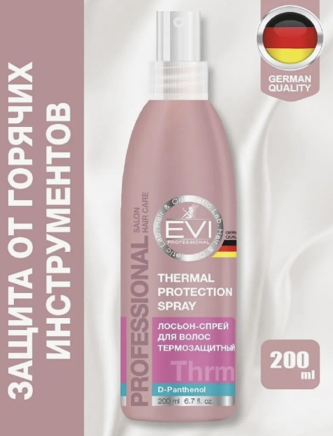 Термозащитный спрей для волос EVI Professional это продукт с ухаживающими свойствами, обеспечивающий надежную защиту волос от инструментов моделирования (утюжков, плоек и т.п.) без утяжеления прядей. Уникальный невидимый защитный экран препятствует потери влаги и питательных веществ волос.