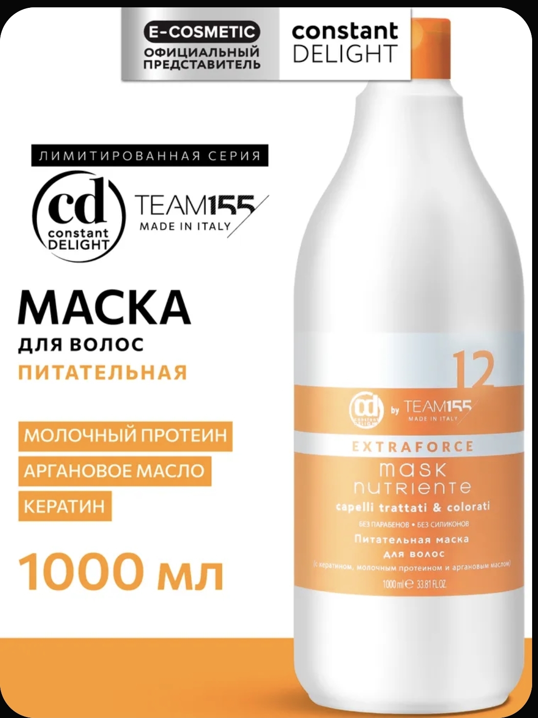 Профессиональная питательная маска TEAM extraforce CONSTANT DELIGHT создана для глубокого восстановления сухих, ломких и повреждённых волос. Подходит для локонов, ослабленных окрашиванием, обесцвечиванием или химической завивкой. Формула с кератином, молочными протеинами и маслом арганы интенсивно питает и увлажняет, восстанавливая эластичность и прочность по всей длине. Активные компоненты помогают сгладить поверхность, уменьшают ломкость и защищают от пересушивания. Маска легко распределяется, проникая в структуру волос, укрепляет их изнутри и придаёт шелковистую мягкость. После применения локоны становятся послушными, приобретают здоровый блеск и ухоженный вид. Идеальный выбор для тех, кто хочет вернуть волосам жизненную силу, мягкость и упругость