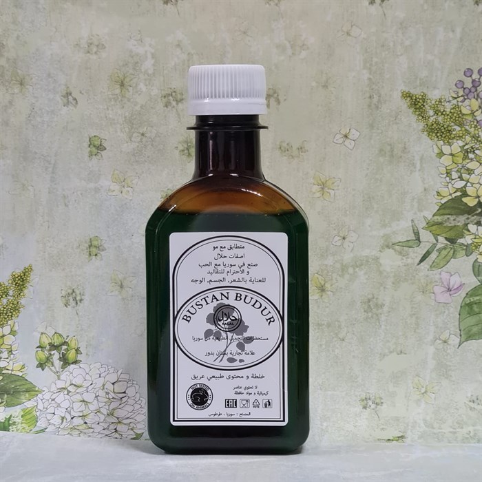 Состав: оливковая и лавровая эмульсия из оливок сорта Абу-Саттл и шишек лавра благородного (Láurus nóbilis), масло и слизь семян льна (Linum), масло семян кардамона (Elettaria cardamomum), масло косточки сливы и камедь сливового дерева (Prúnus), перемолотые листья усьмы (вайды красильной Ísatis tinctória), гидролат цветов розмарина (Rosmarinus officinalis L), масло ореха арганы (Argania spinosa), выжимка листьев девясила душистого (Inula graveolens), экстракт листьев бадьяна (Illicium verum), масло листьев кассии коричной (Laurus cassiazzsza), нектар донника (Mililotus officinalis), гидролат цветов мускатного ореха (Hesrolat mace), пудра хлорофилловой водоросли, очищенная слизь пустынной улитки Sphincterochila boissieri, масло и перемолотые семена черного тмина дамасского (Nigella damascena L), жир кобры, масло ячменя гривастого (Hordeum jubatum L), масло семян крапивы двудомной (Urtica dioica L), зеленый мыльный корень (Saponaria officinalis), смола акации сеяльской (Vachellia seyal), смола мирры йеменской (Commiphora myrrha), пудра природной смолы ферула (Ferula galbaniflua), пудра природной смолы стиракса (Styrax L.).