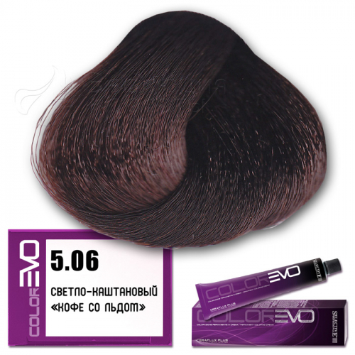 Selective Крем-краска для волос Colorevo  (Selective Professional) . Тон 5.06 - светло-каштановый кофе со льдом. Серия Фантазия. Объем: 100 мл. Перманентная краска с интенсивным покрывающим эффектом, идеальна для окрашивания волос со 100% сединой. Тона крем-краски Colorevo можно смешивать с корректорами Colorevo Mix, а также между собой, получая разную гамму цветов для реализации любого желания клиента. Краска проста в подготовке и, благодаря кремообразной консистенции, равномерно распределяется по волосам, плотно покрывая их.       КОРРЕКТОРЫ   7 корректоров: нейтральный, корректор осветления, синий, пепельный интенсивный, желтый, красный интенсивный, фиолетовый интенсивный. Colorevo Mix - это чистые тона, позволяющие устранить ненужные оттенки или создать бесконечные цветовые вариации.       АКТИВНЫЕ КОМПОНЕНТЫ CERAFLUX PLUS Color Diffusion System - инновационные керамиды. Система Ceraflux Plus позволяет красителю восстанавливать волосы одновременно с окрашиванием, ламинировать и защищать, долго сохранять цвет и делать его устойчивым. Фитостеролы - активные вещества растительного происхождения - увлажняют, кондиционируют и защищают волосы. Сбалансированные эмульгаторы и регуляторы консистенции - обеспечивают одинаковую вязкость, устойчивость к изменениям окружающей среды. Увлажняющий компонент - для наилучшей адгезии (прилипания) к волосам. Хелатирующий агент - для нейтрализации металлических примесей, которые могут помешать при проявлении цвета. Антиоксиданты - сохраняют неизменным продукт с течением времени. Приятный цветочный аромат. Контролируемый уровень аммиака - минимальное количество для максимального результата.     КАК ПРИМЕНЯТЬ?   Крем-краска Colorevo смешивается с окислительной эмульсией Colorevo Oxy (3%, 6%, 9%, 12%) в пропорции 1:1 (например, 100 мл Colorevo + 100 мл Colorevo Oxy 3-6-9%). Наносится на сухие, немытые волосы. Время выдержки 30 минут.   ColorEVO Blond - суперосветляющая серия, которая работает на натуральной базе и способна осветлить волосы на 4-5 тонов. При использовании суперосветляющей серии пропорция смешивания крем-краски Colorevo с окислительной эмульсией Colorevo Oxy составляет 1:2 (100 мл Colorevo + 200 мл Colorevo Oxy 12%). Время выдержки 45 минут.   Colorevo Mix (корректоры) - добавляются в краску в количестве, необходимом для выбранного нюанса. Чем светлее тон, тем меньше требуется Colorevo Mix, за исключением Colorevo Blond. Для тонов 9-10 уровня рекомендуется добавить не более 5% от общего количества крем-краски, в то время как для более темных нюансов следует использовать больше корректора. В любом случае, количество добавляемого Colorevo Mix не должно превышать 30%. Затем смешивается общее количество крема в пропорции 1:1 (Colorevo + Colorevo Oxy) или 1:2 (Colorevo Blond + Colorevo Oxy 12%).     КСТАТИ...   CERAFLUX PLUS - это биоидентичный концентрат липидов. Его состав повторяет состав липидов, обычно присутствующих в кутикуле волос. Только биоидентичный комплекс позволяет вносить активные компоненты в нужном качестве и количестве, чтобы создать идеальный косметический эффект.       ПРЕИМУЩЕСТВА   Запатентованная новая технология CERAFLUX PLUS Color Diffusion System - биоидентичный концентрат липидов. Максимально широкий выбор оттенков (более 170 оттенков). Сохранение цвета в течение длительного времени. Крем-краска с питательными и ухаживающими компонентами. Волосы более плотные и послушные при последующей обработке. Безопасный продукт без риска для здоровья. Сертифицированная систем