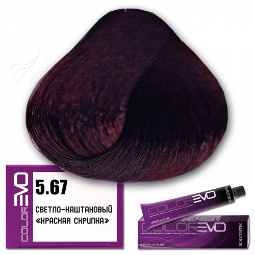 Selective Крем-краска для волос Colorevo  (Selective Professional) . Тон 5.7 - светло-каштановый фиолетовый. Серия фиолетовая. Объем: 100 мл Перманентная краска с интенсивным покрывающим эффектом, идеальна для окрашивания волос со 100% сединой. Тона крем-краски Colorevo можно смешивать с корректорами Colorevo Mix, а также между собой, получая разную гамму цветов для реализации любого желания клиента. Краска проста в подготовке и, благодаря кремообразной консистенции, равномерно распределяется по волосам, плотно покрывая их.       КОРРЕКТОРЫ   7 корректоров: нейтральный, корректор осветления, синий, пепельный интенсивный, желтый, красный интенсивный, фиолетовый интенсивный. Colorevo Mix - это чистые тона, позволяющие устранить ненужные оттенки или создать бесконечные цветовые вариации.       АКТИВНЫЕ КОМПОНЕНТЫ CERAFLUX PLUS Color Diffusion System - инновационные керамиды. Система Ceraflux Plus позволяет красителю восстанавливать волосы одновременно с окрашиванием, ламинировать и защищать, долго сохранять цвет и делать его устойчивым. Фитостеролы - активные вещества растительного происхождения - увлажняют, кондиционируют и защищают волосы. Сбалансированные эмульгаторы и регуляторы консистенции - обеспечивают одинаковую вязкость, устойчивость к изменениям окружающей среды. Увлажняющий компонент - для наилучшей адгезии (прилипания) к волосам. Хелатирующий агент - для нейтрализации металлических примесей, которые могут помешать при проявлении цвета. Антиоксиданты - сохраняют неизменным продукт с течением времени. Приятный цветочный аромат. Контролируемый уровень аммиака - минимальное количество для максимального результата.     КАК ПРИМЕНЯТЬ?   Крем-краска Colorevo смешивается с окислительной эмульсией Colorevo Oxy (3%, 6%, 9%, 12%) в пропорции 1:1 (например, 100 мл Colorevo + 100 мл Colorevo Oxy 3-6-9%). Наносится на сухие, немытые волосы. Время выдержки 30 минут.   ColorEVO Blond - суперосветляющая серия, которая работает на натуральной базе и способна осветлить волосы на 4-5 тонов. При использовании суперосветляющей серии пропорция смешивания крем-краски Colorevo с окислительной эмульсией Colorevo Oxy составляет 1:2 (100 мл Colorevo + 200 мл Colorevo Oxy 12%). Время выдержки 45 минут.   Colorevo Mix (корректоры) - добавляются в краску в количестве, необходимом для выбранного нюанса. Чем светлее тон, тем меньше требуется Colorevo Mix, за исключением Colorevo Blond. Для тонов 9-10 уровня рекомендуется добавить не более 5% от общего количества крем-краски, в то время как для более темных нюансов следует использовать больше корректора. В любом случае, количество добавляемого Colorevo Mix не должно превышать 30%. Затем смешивается общее количество крема в пропорции 1:1 (Colorevo + Colorevo Oxy) или 1:2 (Colorevo Blond + Colorevo Oxy 12%).     КСТАТИ...   CERAFLUX PLUS - это биоидентичный концентрат липидов. Его состав повторяет состав липидов, обычно присутствующих в кутикуле волос. Только биоидентичный комплекс позволяет вносить активные компоненты в нужном качестве и количестве, чтобы создать идеальный косметический эффект.       ПРЕИМУЩЕСТВА   Запатентованная новая технология CERAFLUX PLUS Color Diffusion System - биоидентичный концентрат липидов. Максимально широкий выбор оттенков (более 170 оттенков). Сохранение цвета в течение длительного времени. Крем-краска с питательными и ухаживающими компонентами. Волосы более плотные и послушные при последующей обработке. Безопасный продукт без риска для здоровья. Сертифицированная система