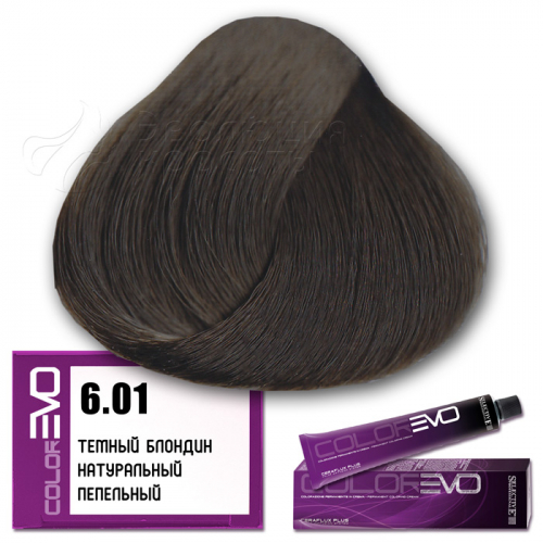 Selective Крем-краска для волос Colorevo  (Selective Professional) . Тон 6.01 - темный блондин натуральный пепельный. Серия пепельная. Объем: 100 мл Перманентная краска с интенсивным покрывающим эффектом, идеальна для окрашивания волос со 100% сединой. Тона крем-краски Colorevo можно смешивать с корректорами Colorevo Mix, а также между собой, получая разную гамму цветов для реализации любого желания клиента. Краска проста в подготовке и, благодаря кремообразной консистенции, равномерно распределяется по волосам, плотно покрывая их.       КОРРЕКТОРЫ   7 корректоров: нейтральный, корректор осветления, синий, пепельный интенсивный, желтый, красный интенсивный, фиолетовый интенсивный. Colorevo Mix - это чистые тона, позволяющие устранить ненужные оттенки или создать бесконечные цветовые вариации.       АКТИВНЫЕ КОМПОНЕНТЫ CERAFLUX PLUS Color Diffusion System - инновационные керамиды. Система Ceraflux Plus позволяет красителю восстанавливать волосы одновременно с окрашиванием, ламинировать и защищать, долго сохранять цвет и делать его устойчивым. Фитостеролы - активные вещества растительного происхождения - увлажняют, кондиционируют и защищают волосы. Сбалансированные эмульгаторы и регуляторы консистенции - обеспечивают одинаковую вязкость, устойчивость к изменениям окружающей среды. Увлажняющий компонент - для наилучшей адгезии (прилипания) к волосам. Хелатирующий агент - для нейтрализации металлических примесей, которые могут помешать при проявлении цвета. Антиоксиданты - сохраняют неизменным продукт с течением времени. Приятный цветочный аромат. Контролируемый уровень аммиака - минимальное количество для максимального результата.     КАК ПРИМЕНЯТЬ?   Крем-краска Colorevo смешивается с окислительной эмульсией Colorevo Oxy (3%, 6%, 9%, 12%) в пропорции 1:1 (например, 100 мл Colorevo + 100 мл Colorevo Oxy 3-6-9%). Наносится на сухие, немытые волосы. Время выдержки 30 минут.   ColorEVO Blond - суперосветляющая серия, которая работает на натуральной базе и способна осветлить волосы на 4-5 тонов. При использовании суперосветляющей серии пропорция смешивания крем-краски Colorevo с окислительной эмульсией Colorevo Oxy составляет 1:2 (100 мл Colorevo + 200 мл Colorevo Oxy 12%). Время выдержки 45 минут.   Colorevo Mix (корректоры) - добавляются в краску в количестве, необходимом для выбранного нюанса. Чем светлее тон, тем меньше требуется Colorevo Mix, за исключением Colorevo Blond. Для тонов 9-10 уровня рекомендуется добавить не более 5% от общего количества крем-краски, в то время как для более темных нюансов следует использовать больше корректора. В любом случае, количество добавляемого Colorevo Mix не должно превышать 30%. Затем смешивается общее количество крема в пропорции 1:1 (Colorevo + Colorevo Oxy) или 1:2 (Colorevo Blond + Colorevo Oxy 12%).     КСТАТИ...   CERAFLUX PLUS - это биоидентичный концентрат липидов. Его состав повторяет состав липидов, обычно присутствующих в кутикуле волос. Только биоидентичный комплекс позволяет вносить активные компоненты в нужном качестве и количестве, чтобы создать идеальный косметический эффект.       ПРЕИМУЩЕСТВА   Запатентованная новая технология CERAFLUX PLUS Color Diffusion System - биоидентичный концентрат липидов. Максимально широкий выбор оттенков (более 170 оттенков). Сохранение цвета в течение длительного времени. Крем-краска с питательными и ухаживающими компонентами. Волосы более плотные и послушные при последующей обработке. Безопасный продукт без риска для здоровья. Сертифицированная 