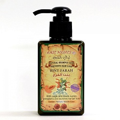 Для ухода за волосами, склонными к выпадению, сухости и ломкости, можно смело рекомендовать натуральный шампунь BINT FARAH «Радость» производства East Nights. Главный ингредиент шампуня – масло семян черного тмина, с которым на Востоке знакома каждая представительница прекрасного пола. Это целебное масло быстро устраняет перхоть, нормализует кровообращение в клетках кожи головы, способствует росту здоровых и сильных волос. Масло листьев шалфея насыщает витаминами, укрепляет ослабленные луковицы, дарит волосам роскошное сияние и блеск.