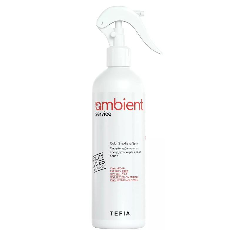 Способ применения: После процедуры окрашивания смойте красящую смесь шампунем Tefia Ambient Service Color Stabilizing Shampoo. Равномерно распылите спрей на влажные волосы, выдержите 1 минуту, тщательно смойте.