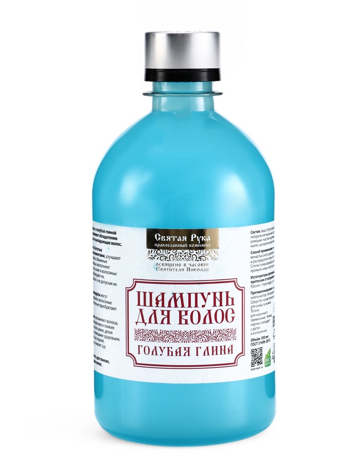 Натуральный шампунь для волос голубая глина, «Святая рука», 500 мл